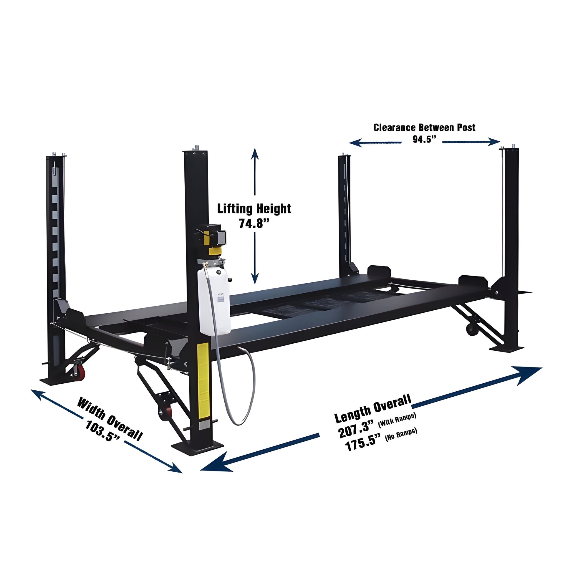 Tuxedo 8,000 Lb Deluxe Storage 4 Post LiftThe new FP8K-DX Four Post Storage Lifts come standard with Poly Caster sand Drip Trays, along with a Jack/Tool Tray, making these models one of the best Service & Storage Lift values in the industry