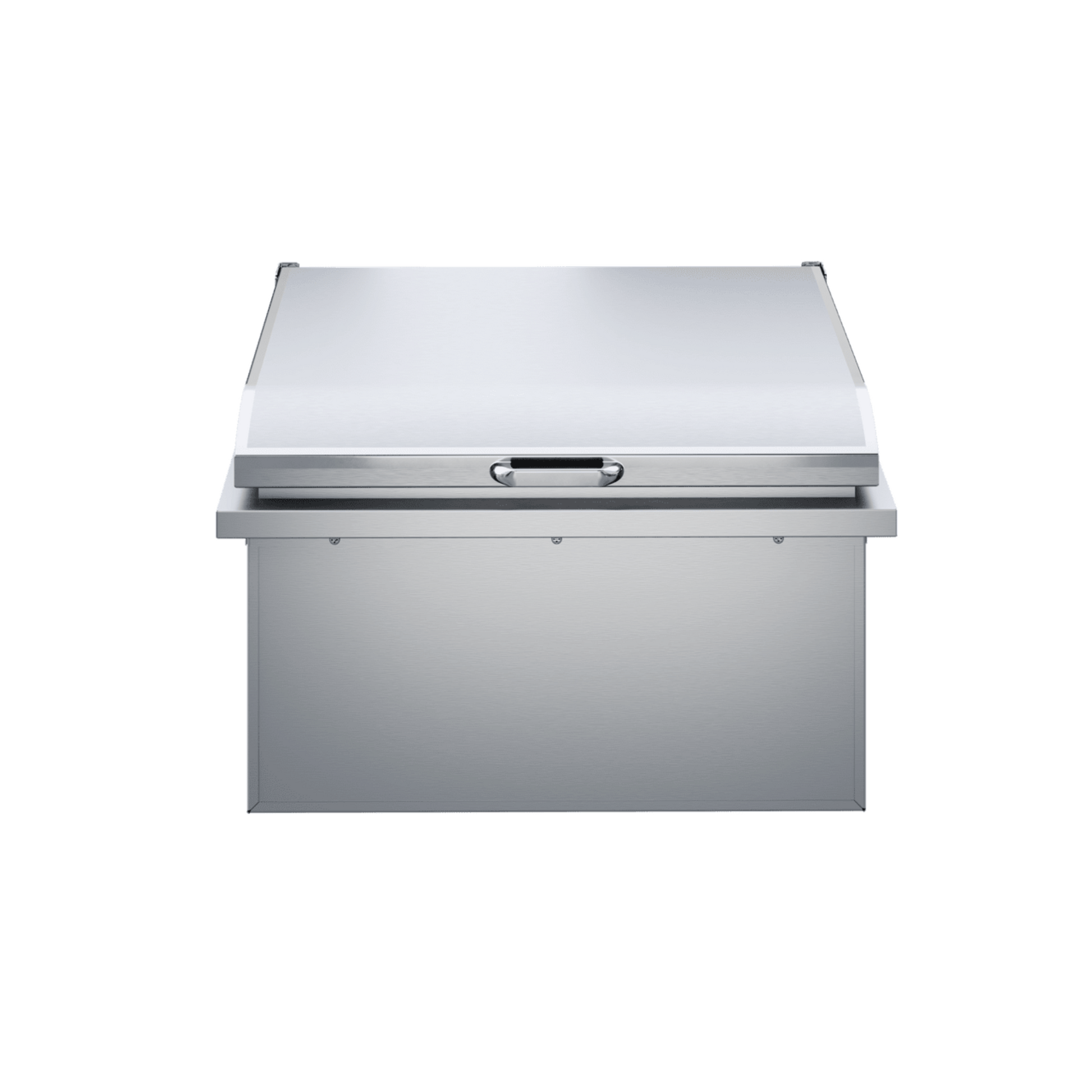 This premium, 24 inch drop-in cooler accommodates up to 60 bottles and 25 pounds of ice. Contents stay ice cold thanks to the insulated bin and gasket-sealed lid. The sleek, geometrical design shows off our signature polished accents and gives the cooler a luxurious appearance. When you're done entertaining, just let the ice melt and then empty the cooler using the drain.