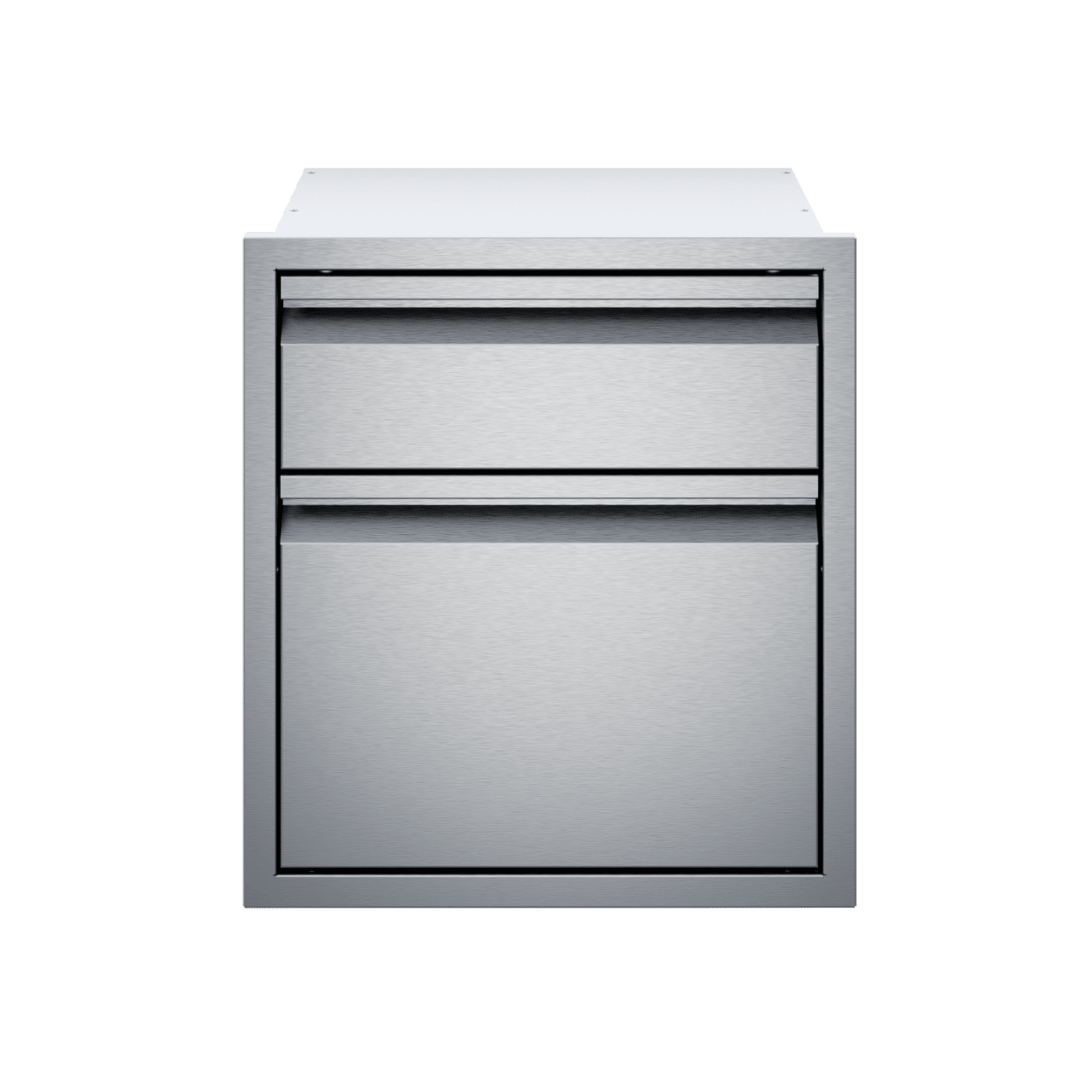 It’s easy to keep your outdoor kitchen well-stocked thanks to the Double Storage Drawers. A shallow and deep drawer provide flexible options for items large and small. Self-latching with full extension slides, you’ll have quick access to your cooking supplies and convenient storage when they’re not in use.