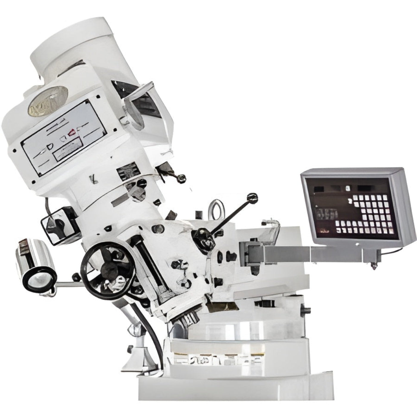 A: A 3 HP vertical milling machine with variable speed, power feed, and a digital readout (DRO), designed for precision machining in industrial and workshop settings.