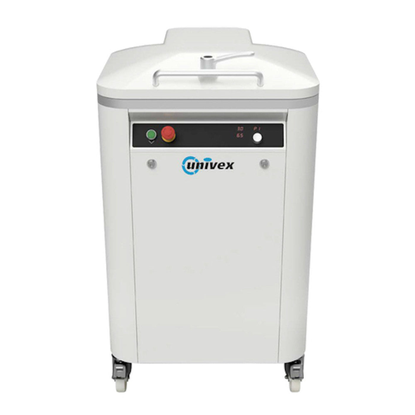 A: The Univex AQD40 is a high-capacity automatic hydraulic dough divider designed to streamline dough portioning in commercial baking operations. It divides dough weights ranging from 2.82 oz to 17.6 oz (80 g to 500 g), producing 40 evenly sized pieces in just 7 seconds, achieving an impressive output of up to 4,800 pieces per hour.