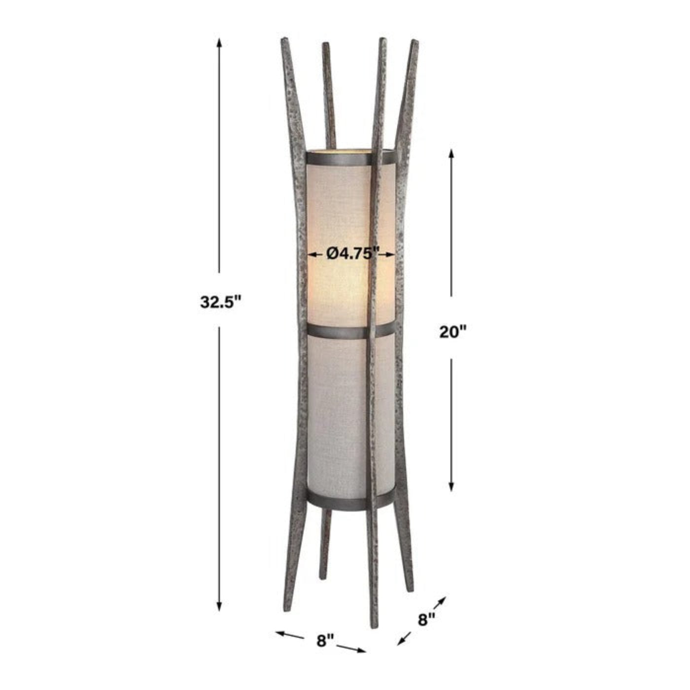 Neutral pewter and linen palette with a classic silhouette adapts to modern lofts, rustic cottages, minimalist, or eclectic interiors — functional lighting and décor centerpiece in one.