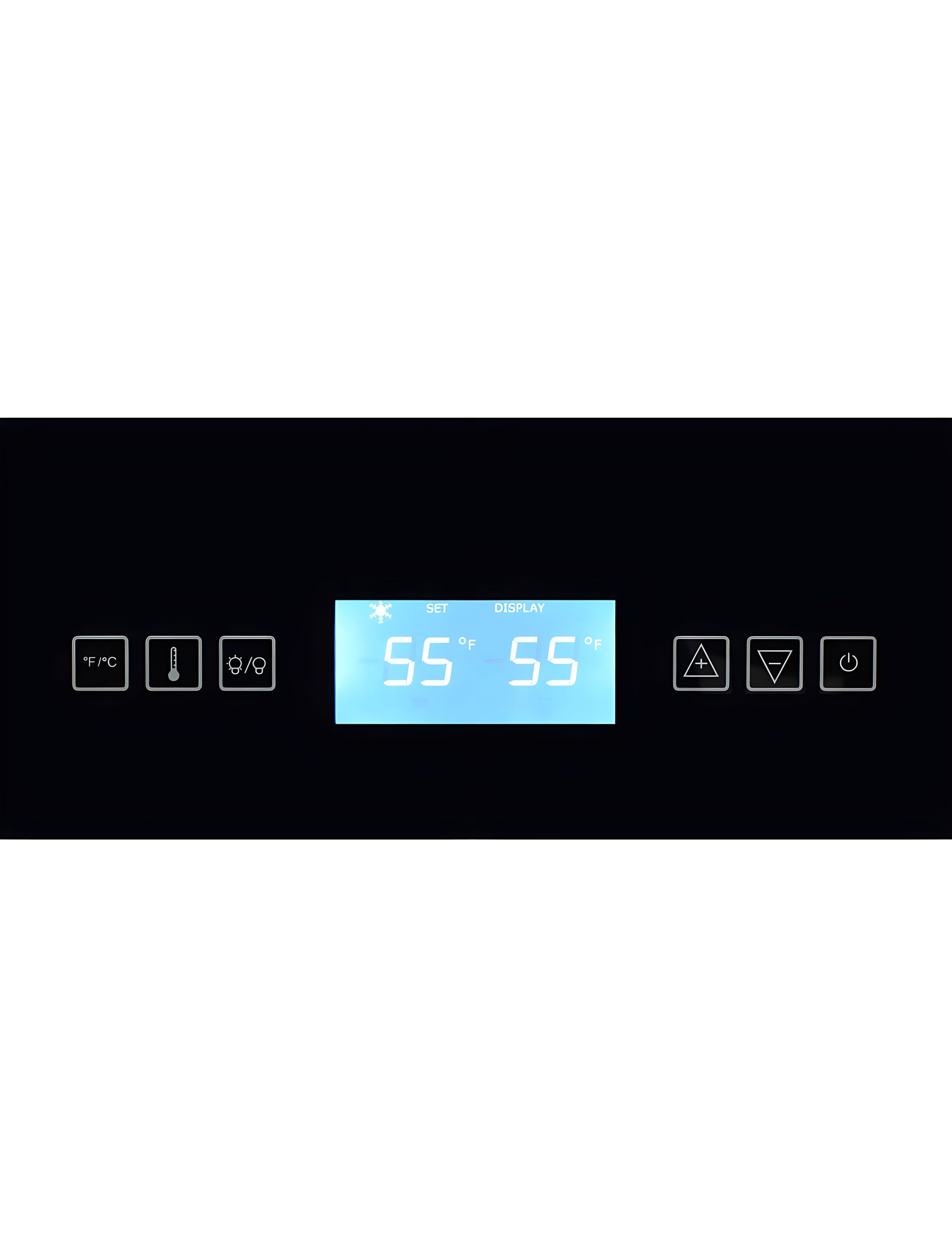 • Patented interior Backlit (baklīt) panel: Heliotrope, Amber, and Vinotemp BioBlu back-lit