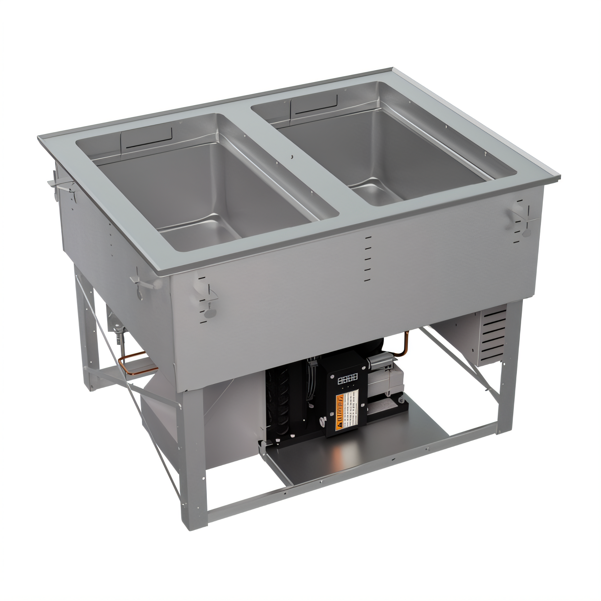 A: A two-well modular drop-in food well that can independently operate in hot, cold, or frozen mode — ideal for buffet lines, salad bars, cafeterias, grab-and-go counters, or versatile service stations.