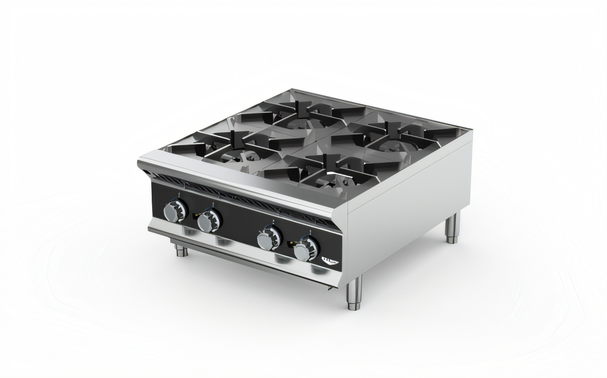 Six 26,000 BTU burners deliver fast, consistent heat for high-volume cooking.