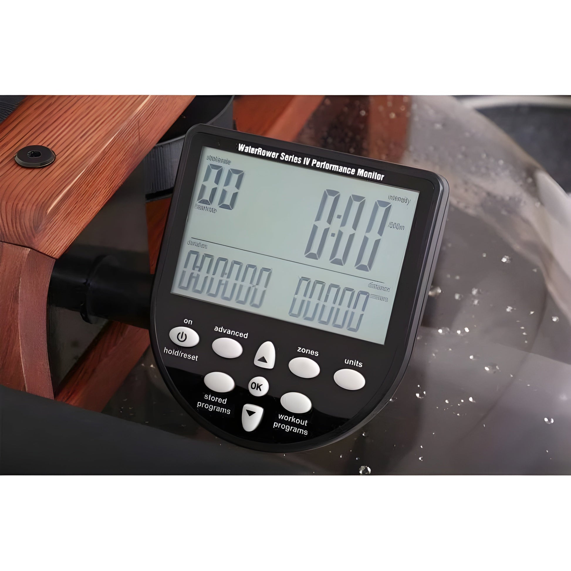 A: The machine uses a water flywheel to generate resistance. The harder you row, the greater the resistance, mimicking the natural feel of rowing on water.