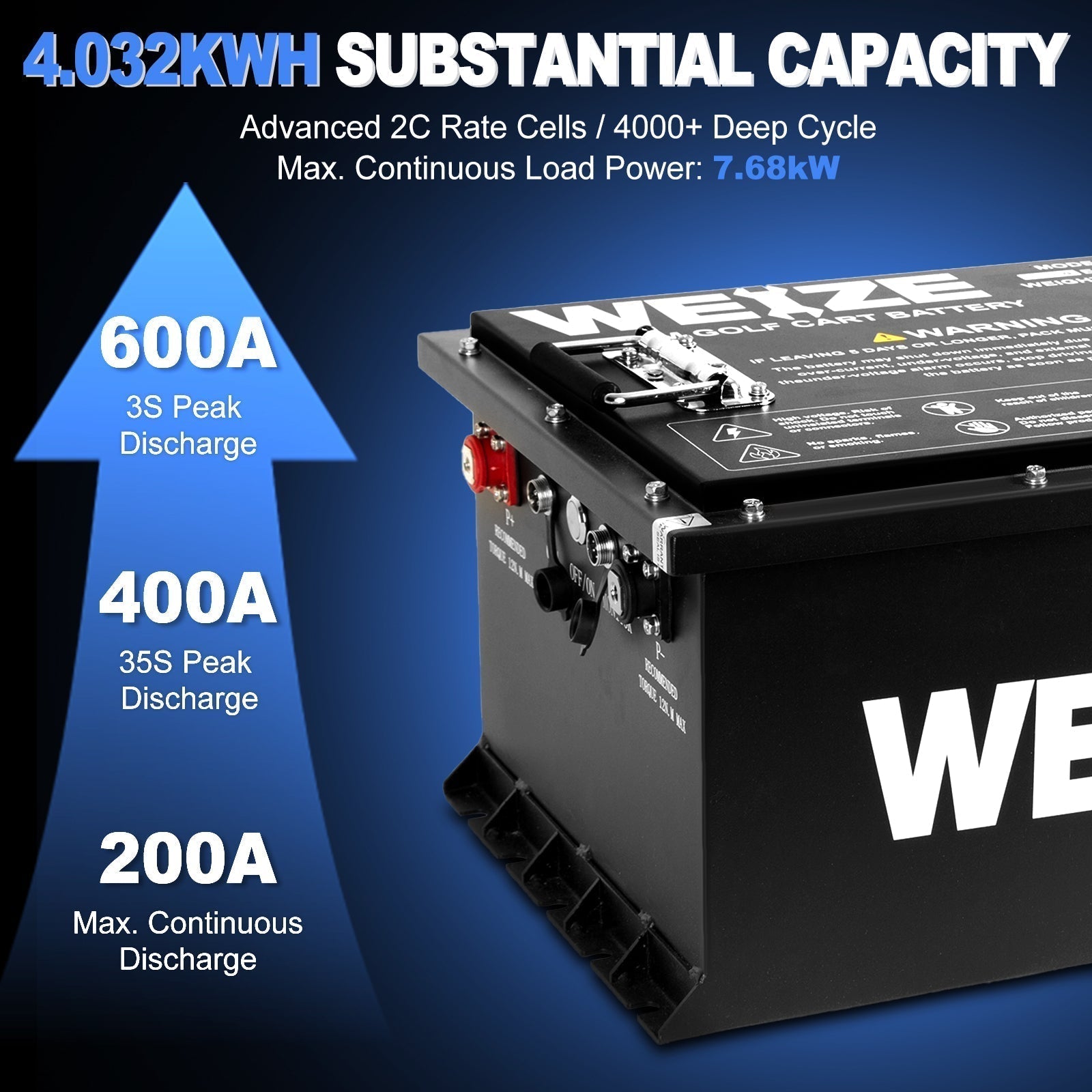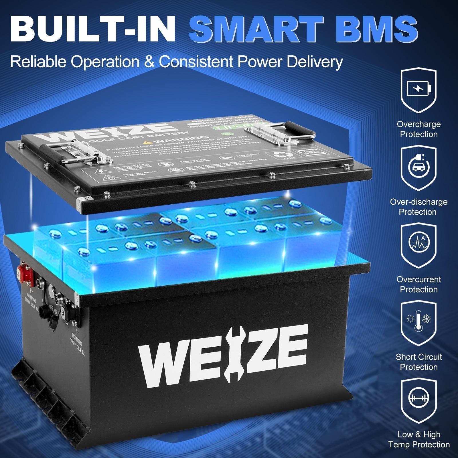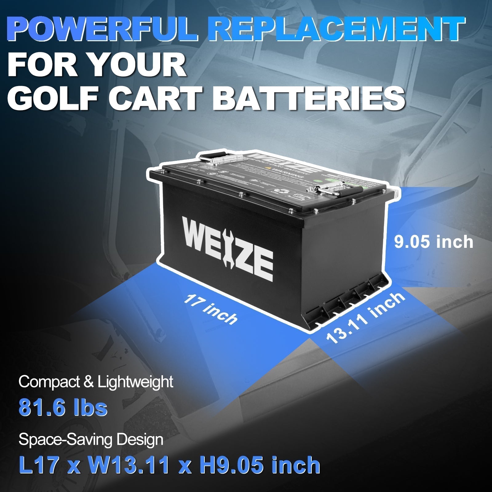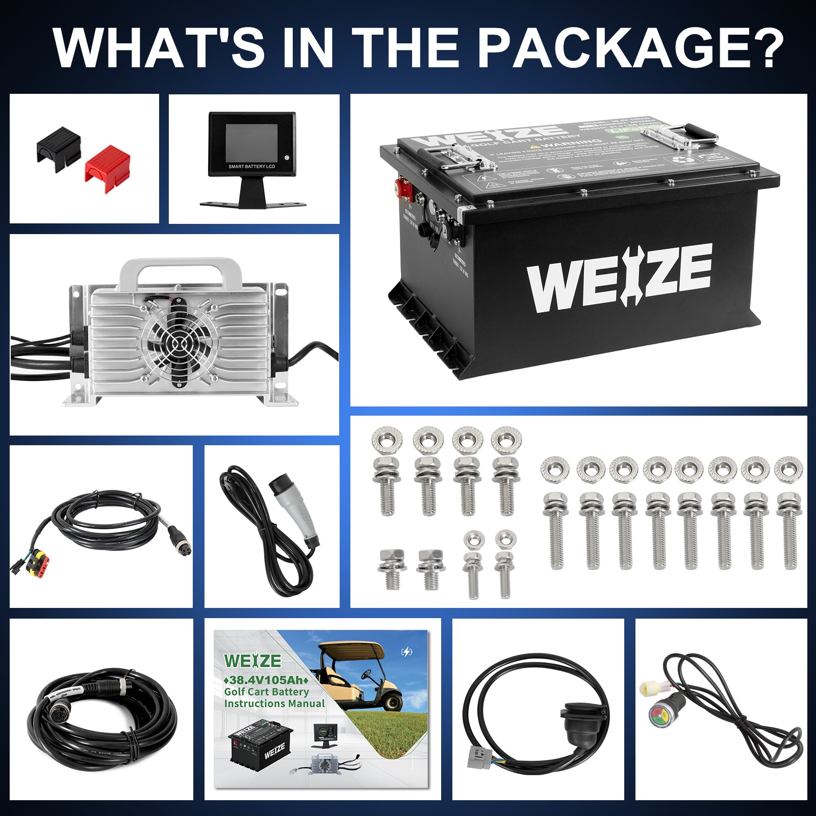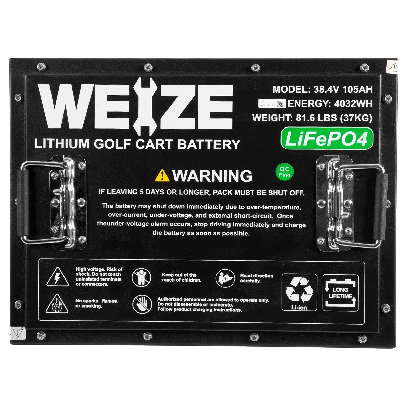 Q: What is the WEIZE 36V 105Ah LiFePO4 Golf Cart Battery?