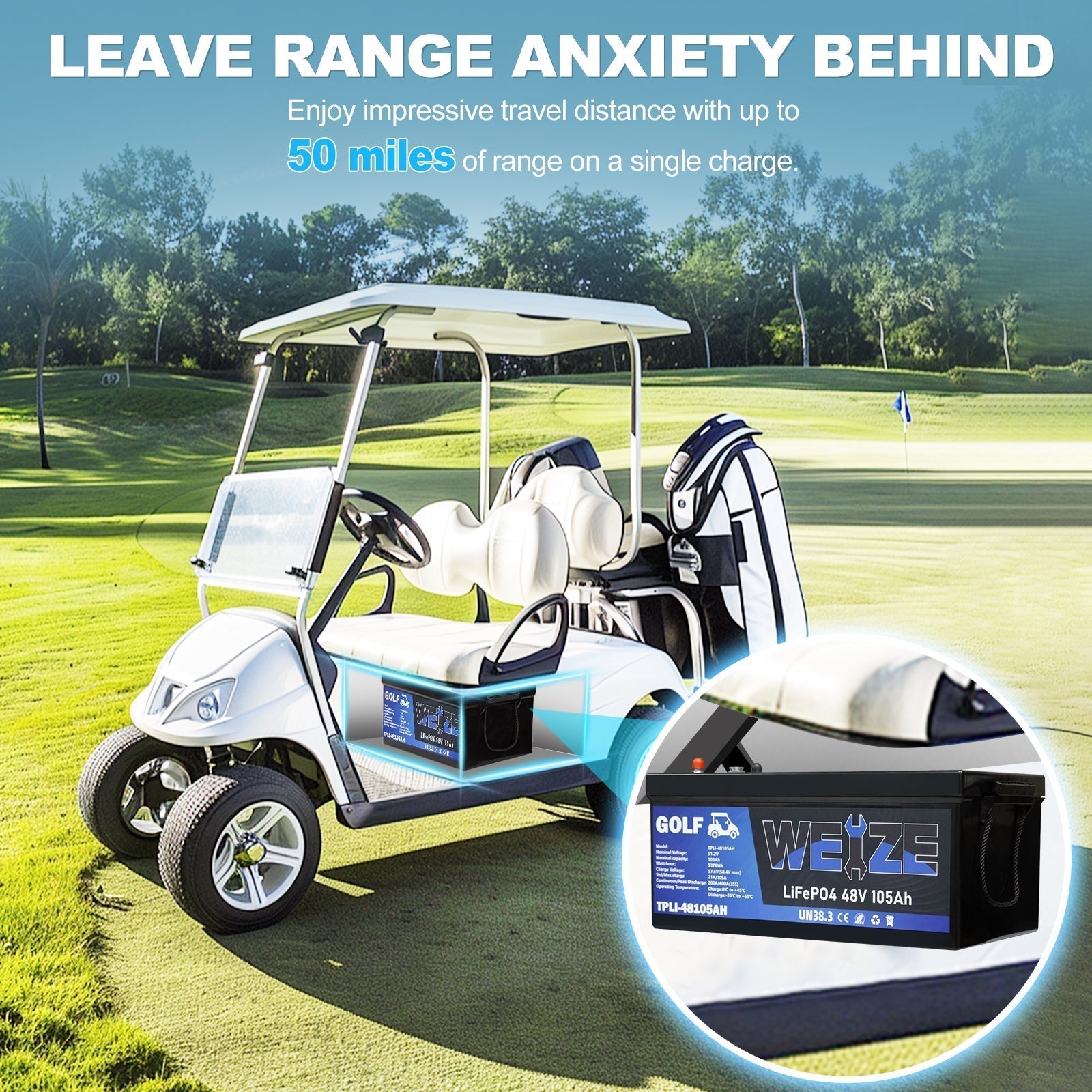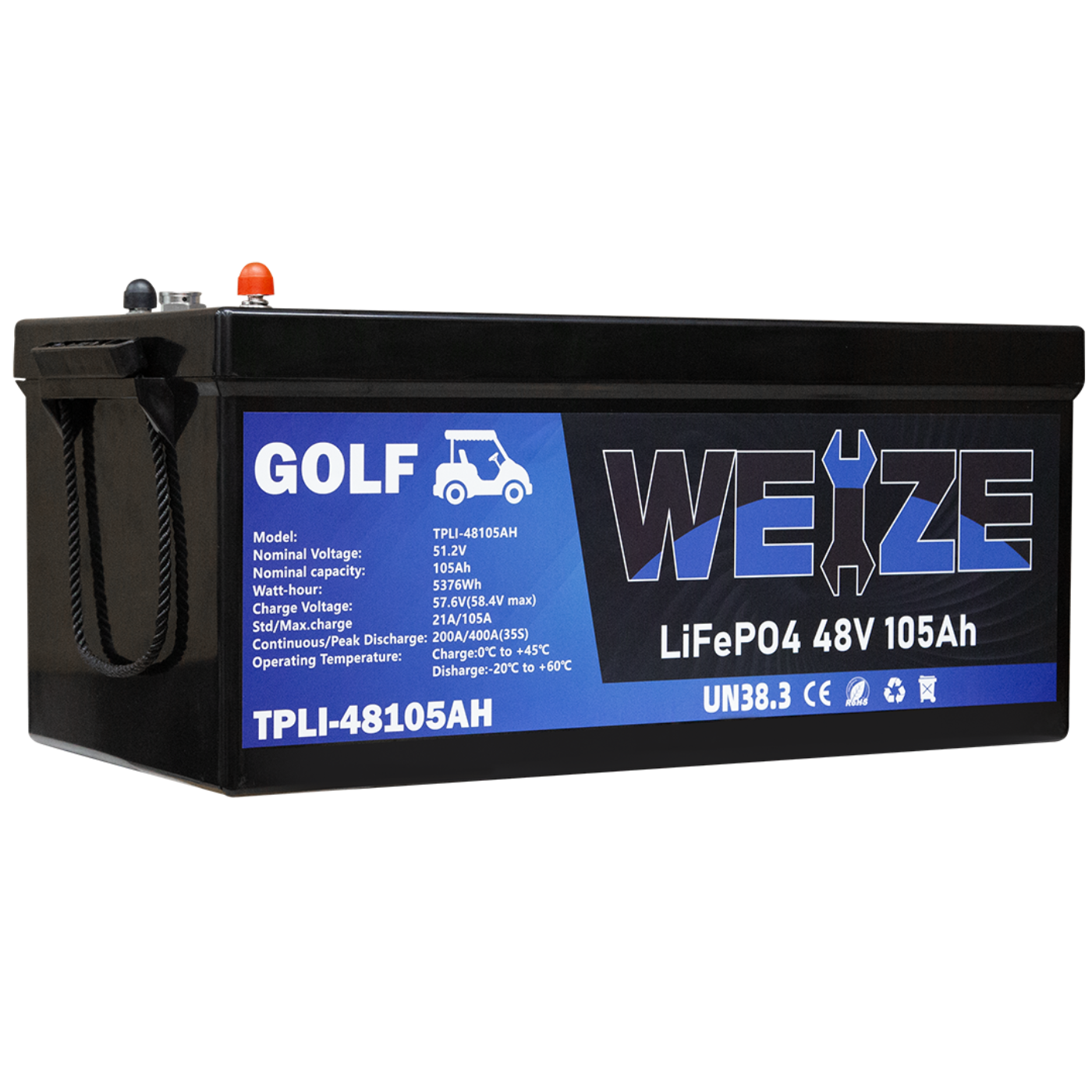 Q: What is the WEIZE 48V 105Ah LiFePO4 Golf Cart Battery?