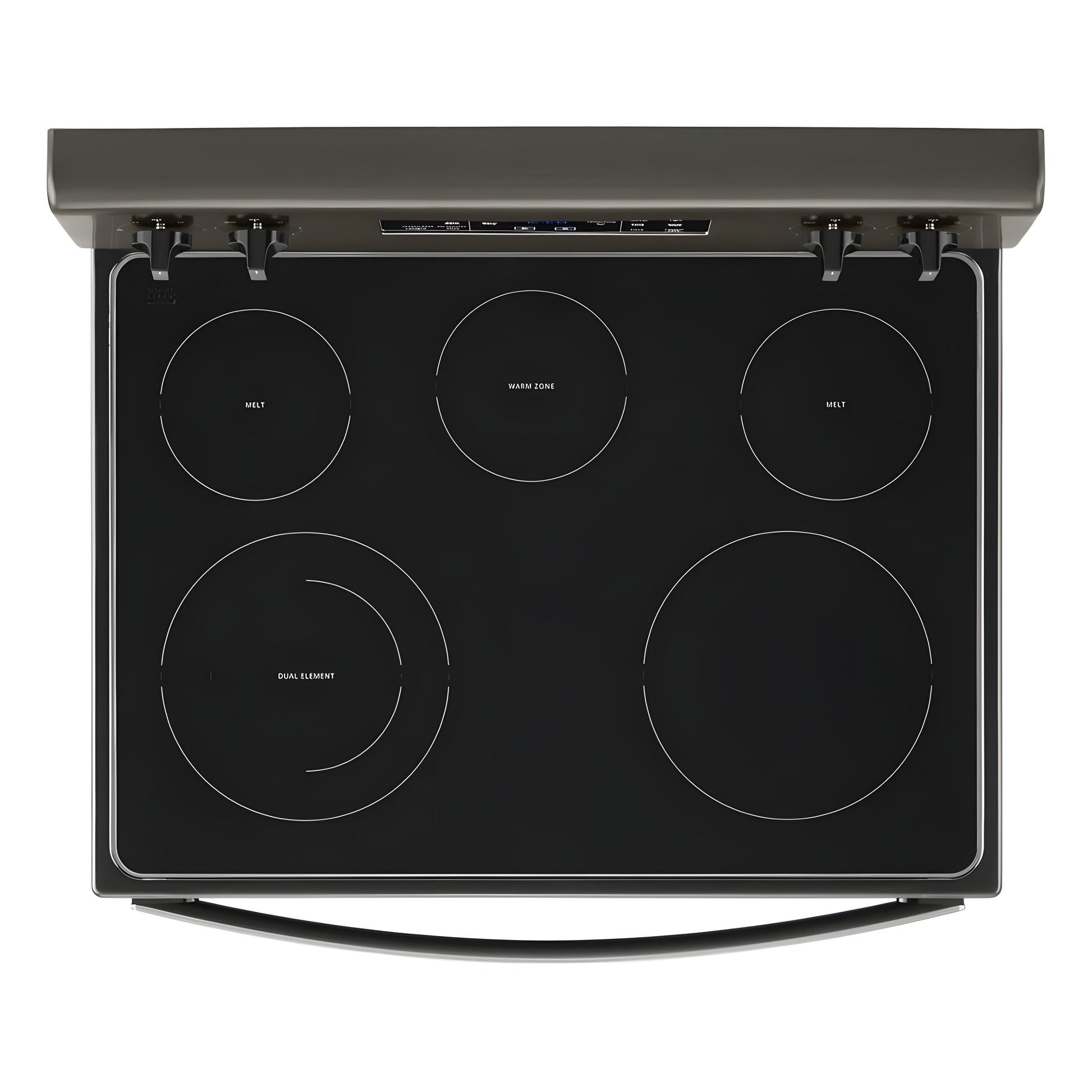 (P) This Whirlpool(R) electric range with a dual element stove top resists fingerprints and helps you get dinner to the table. Skip preheating for favorites like pizza with Frozen Bake technology. This steam cleaning oven also prevents cooked food from getting cold with a Warm Zone on the cooktop and the Keep Warm setting in the oven. (/P)