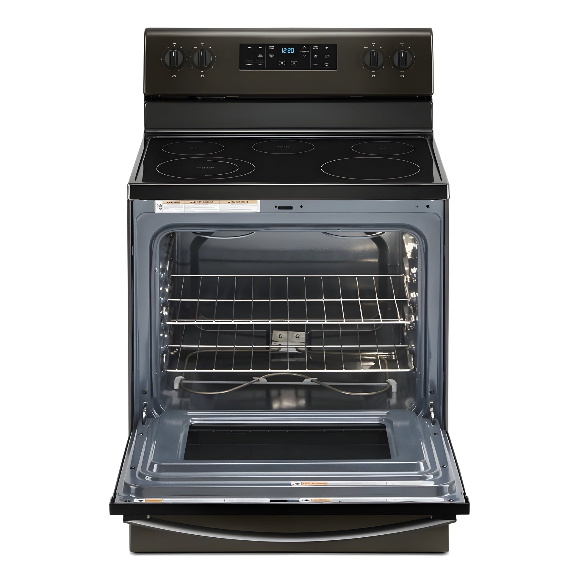 A: This electric range offers 5.3 cu. ft. of oven space, providing enough room for cooking large meals or multiple dishes at once.