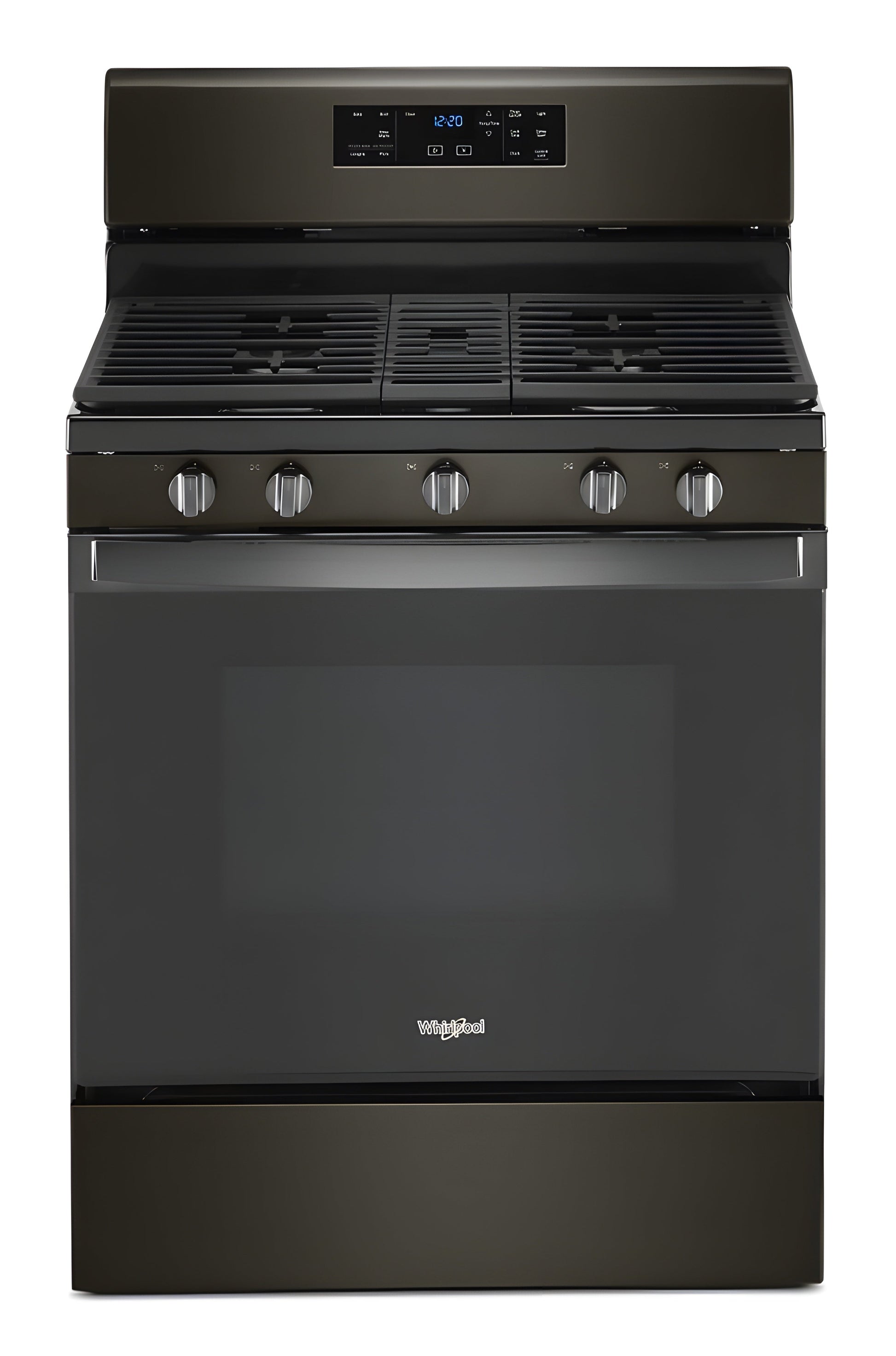 A: The Whirlpool WFG525S0JV is a 5.0 cu. ft. gas range featuring a center oval burner, providing extra cooking flexibility for larger cookware such as griddles, along with a spacious oven for everyday cooking.