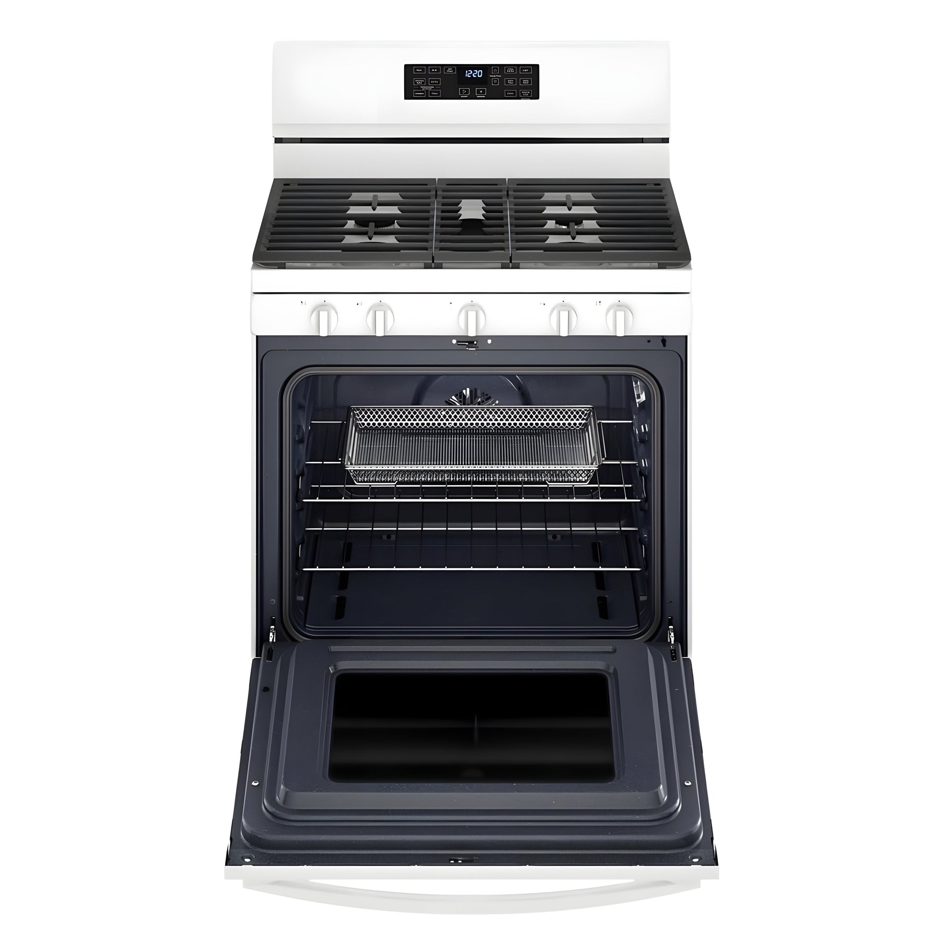 A: This gas range offers a spacious 5.0 cu. ft. oven, giving you ample room for large meals or multiple dishes at once.
