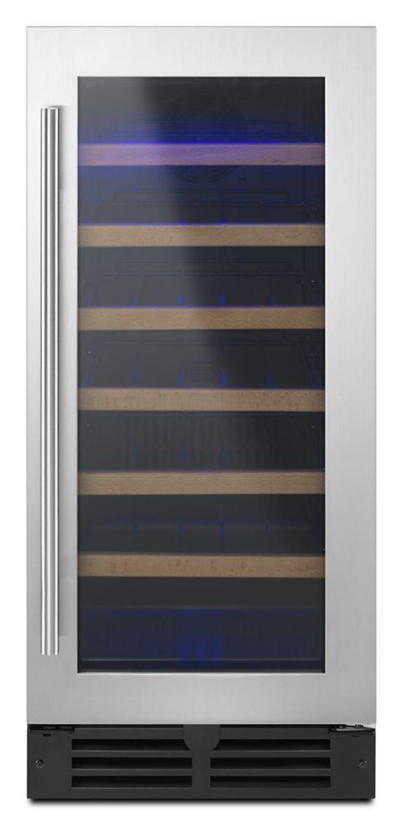 Whirlpool introduces our new undercounter wine center with storage for up to 34 bottles of your favorite red or white wines. Custom temperature selection allows you to store wine the way you prefer best. Plus, you'll see just what you are looking for with LED interior lighting. Now, your undercounter center blends seamlessly with your existing kitchen design thanks to the towel bar handle.Â