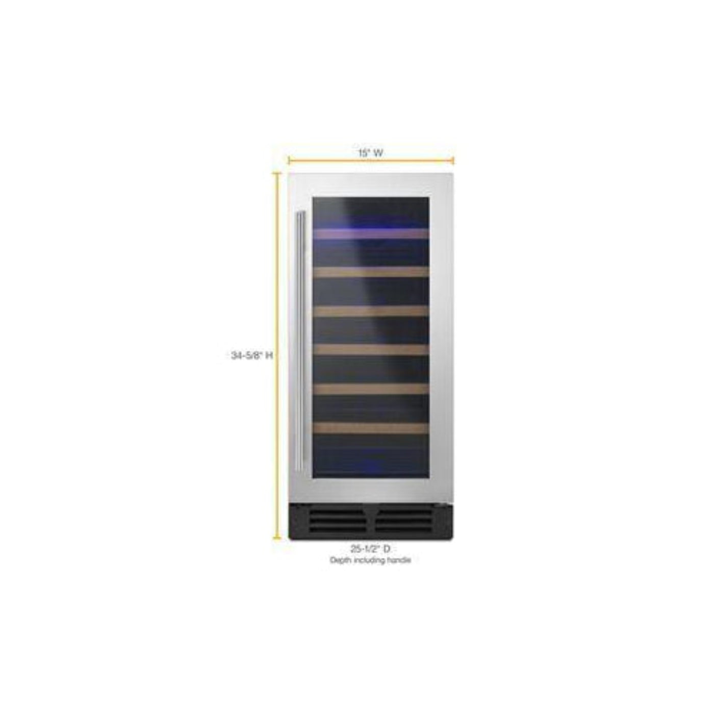 A: This 15-inch undercounter wine center features a sleek design with a towel handle bar, offering ample storage for wine bottles at an optimal temperature. It fits seamlessly into your kitchen or bar area and provides efficient cooling.