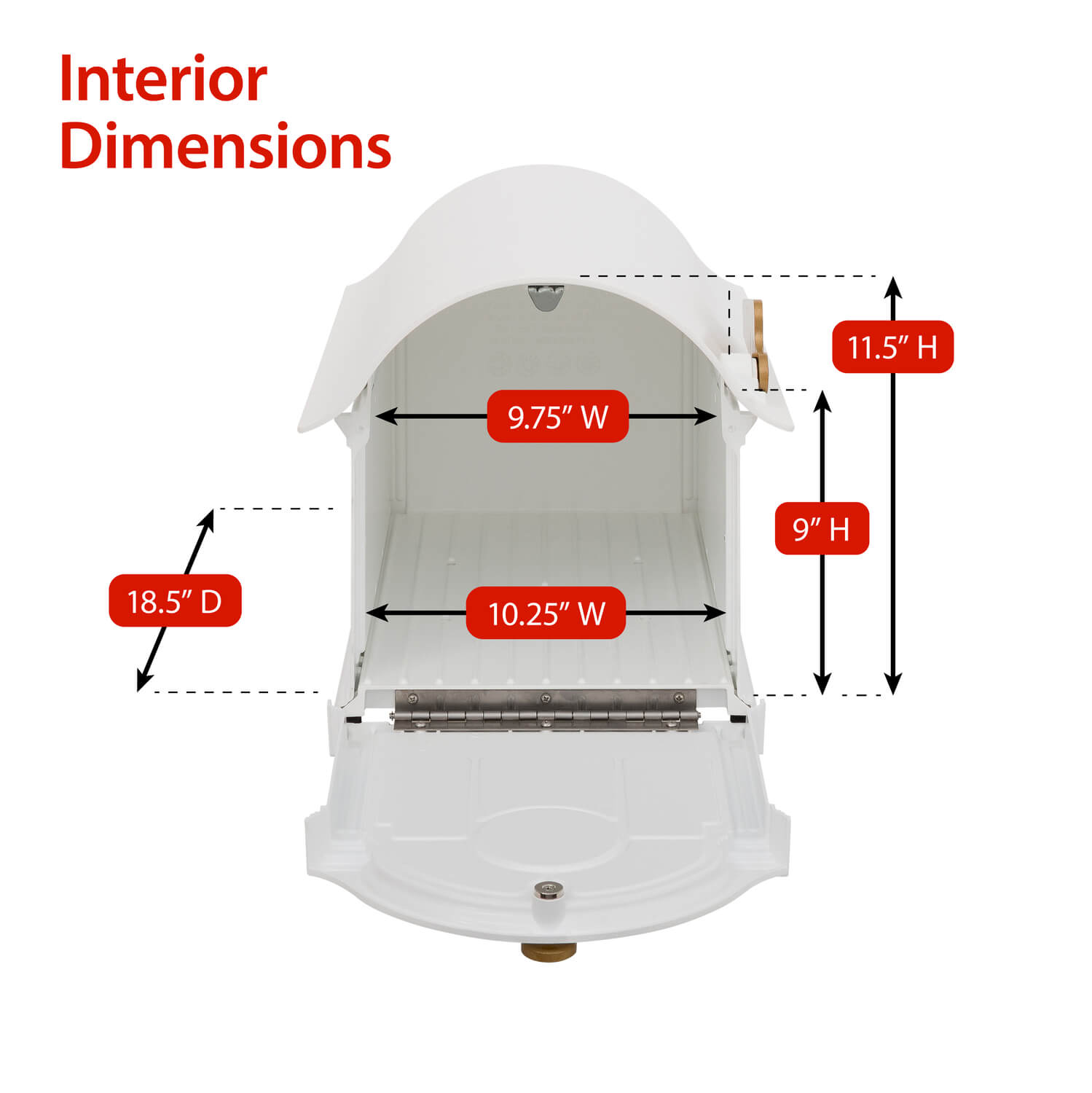 - Mailbox Dimension Inches: 21.25L x 13.63W x 13H
