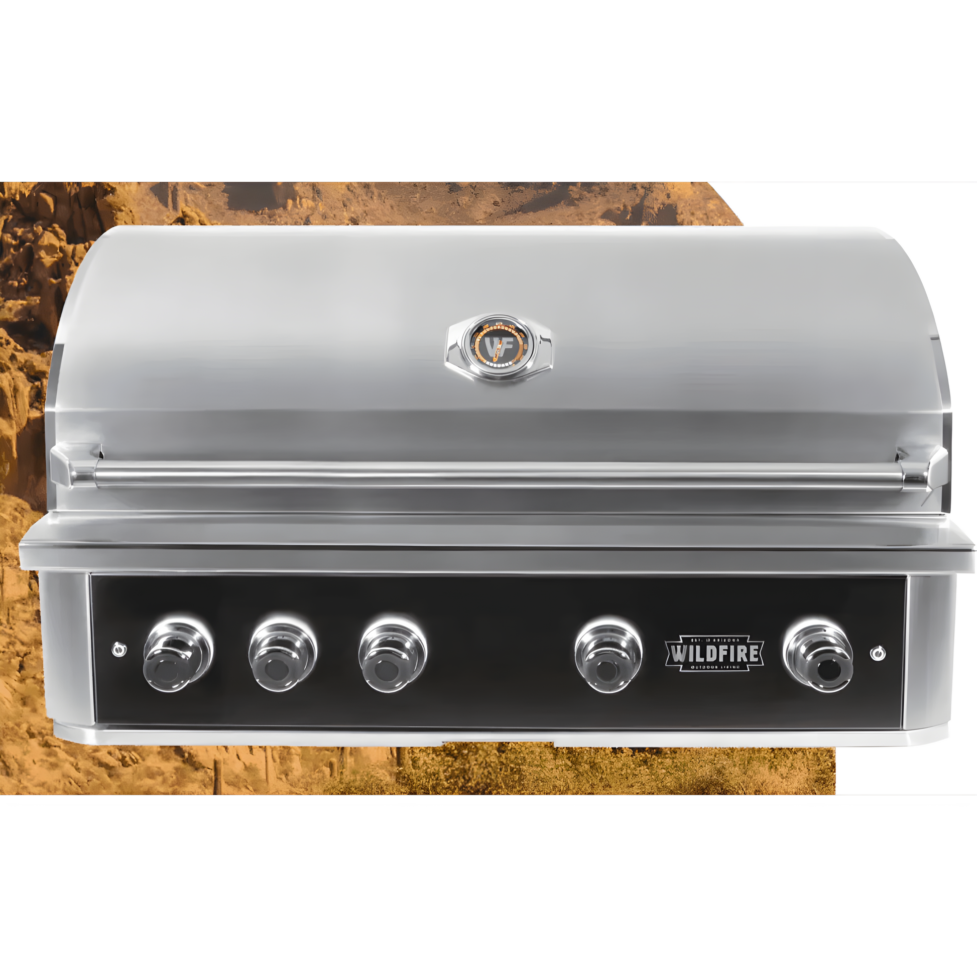Elevate your outdoor culinary experience with the Wildfire Ranch PRO 42" Built-In Gas Grill. Crafted from premium 304 stainless steel and featuring a sleek black stainless steel fascia, this grill combines durability with style, making it the centerpiece of any outdoor kitchen.
