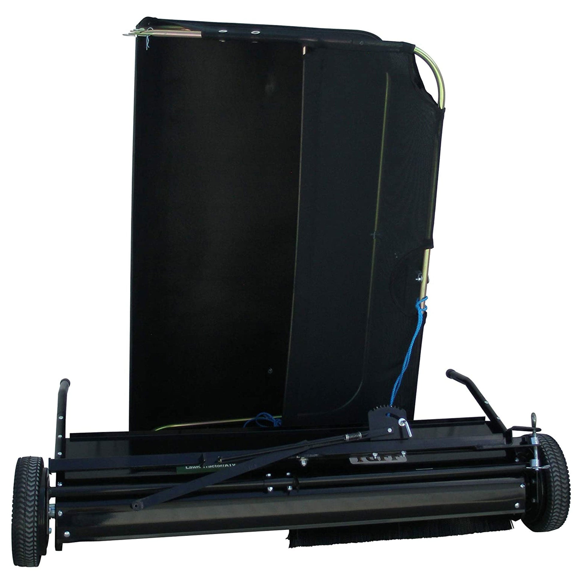 Attach this quick-assembly lawn sweeper to your ATV, UTV, or lawn tractor and watch the magic happen. With a 48-inch sweeping path, this lawn sweeper will make quick work of the unsightly debris in your yard. This sweeper includes 4 brushes for efficient debris collection. A universal pin-style hitch, featuring leveling spacers, allows you to easily tow behind your vehicle. The anti-slip brush with height adjustment affords you extra versatility and convenience. When finished, the sweeper folds up in seconds for simple, compact storage.
