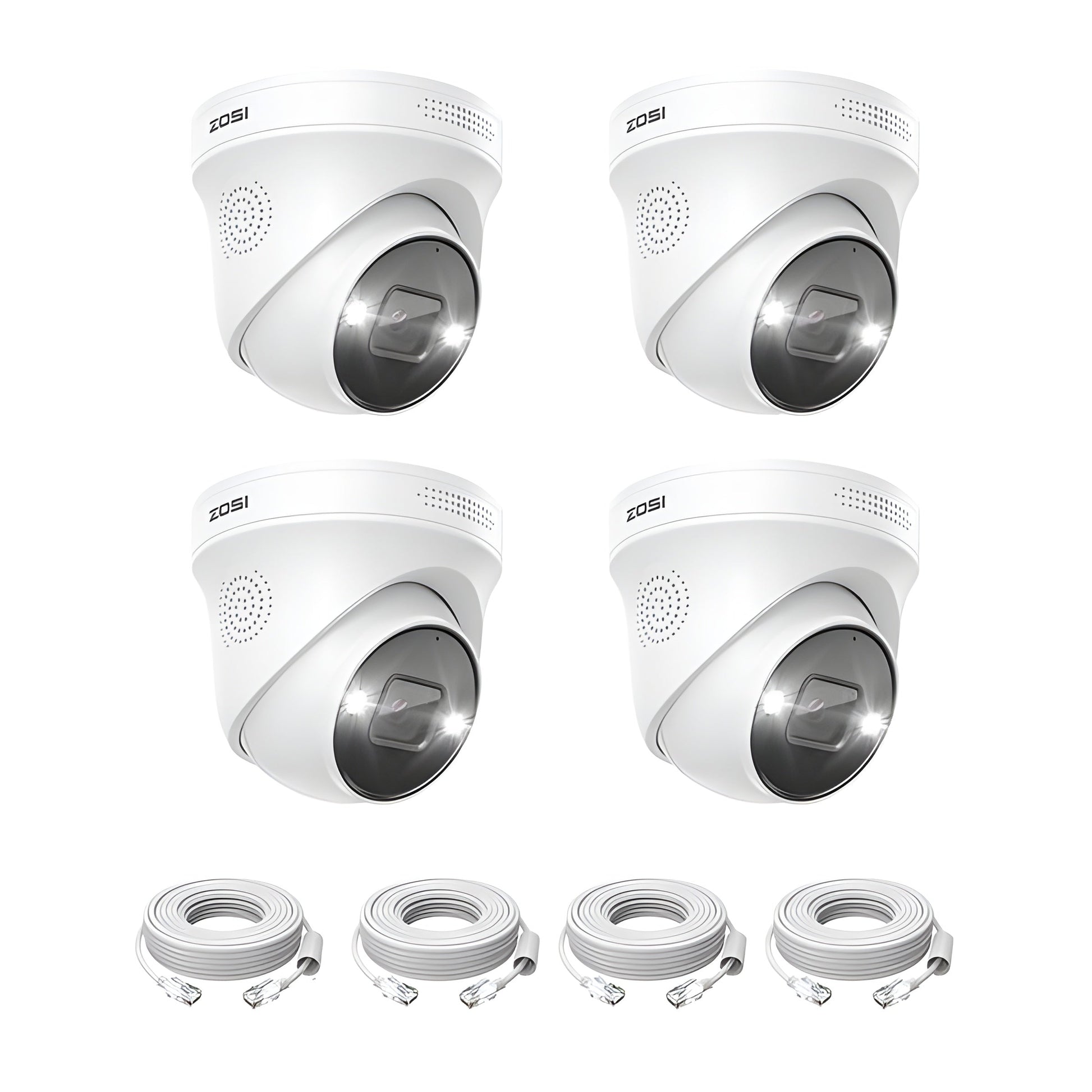 A: The Zosi C225 cameras offer ultra-HD 4K resolution, AI-powered person and vehicle detection, color night vision with built-in spotlights, and IP66 weatherproof durability. These PoE cameras provide clear and detailed footage with minimal false alerts.