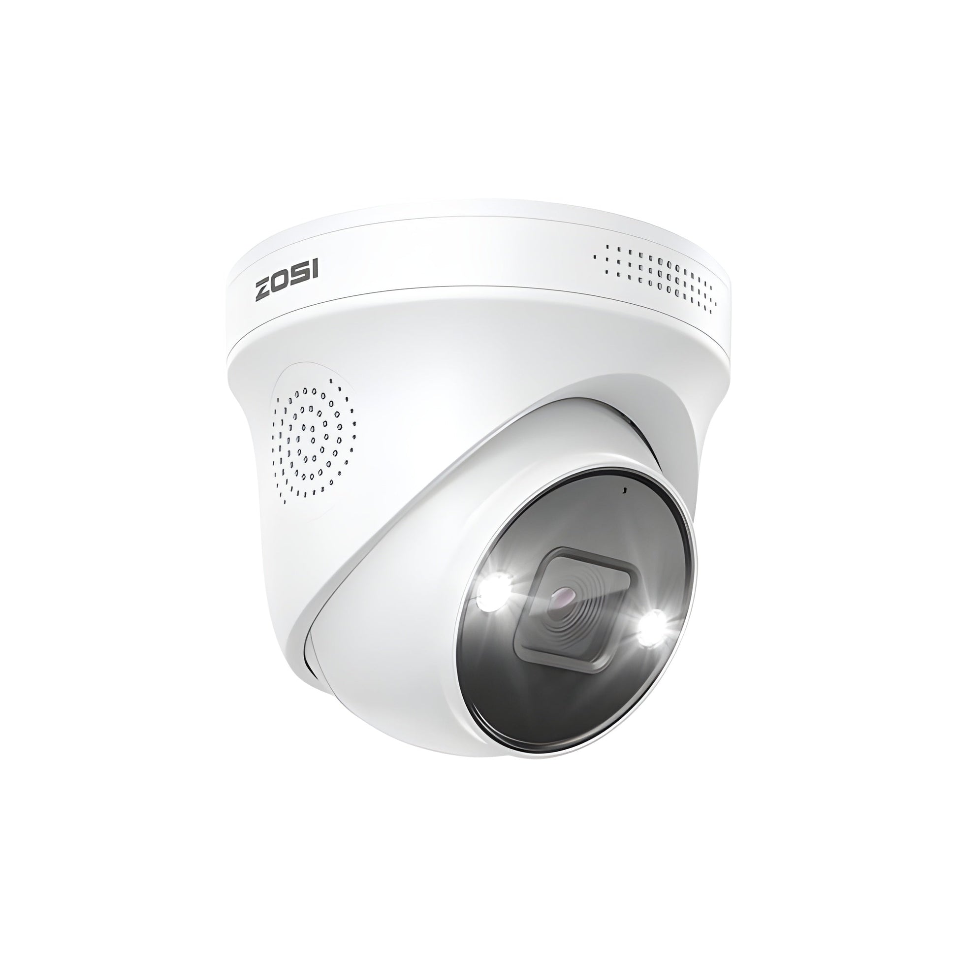 A: The Zosi Add-on 4K PoE Dome Camera delivers ultra-HD 4K resolution, AI-powered person and vehicle detection, color night vision with built-in spotlights, and IP66 weatherproofing for reliable indoor and outdoor use.