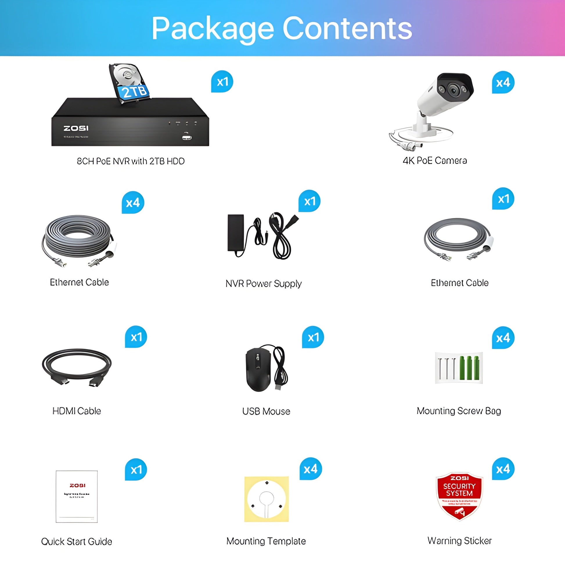 Zosi C182 4K 8 Channel Starlight PoE Camera System + 2TB Hard Drive - ZOSI2
