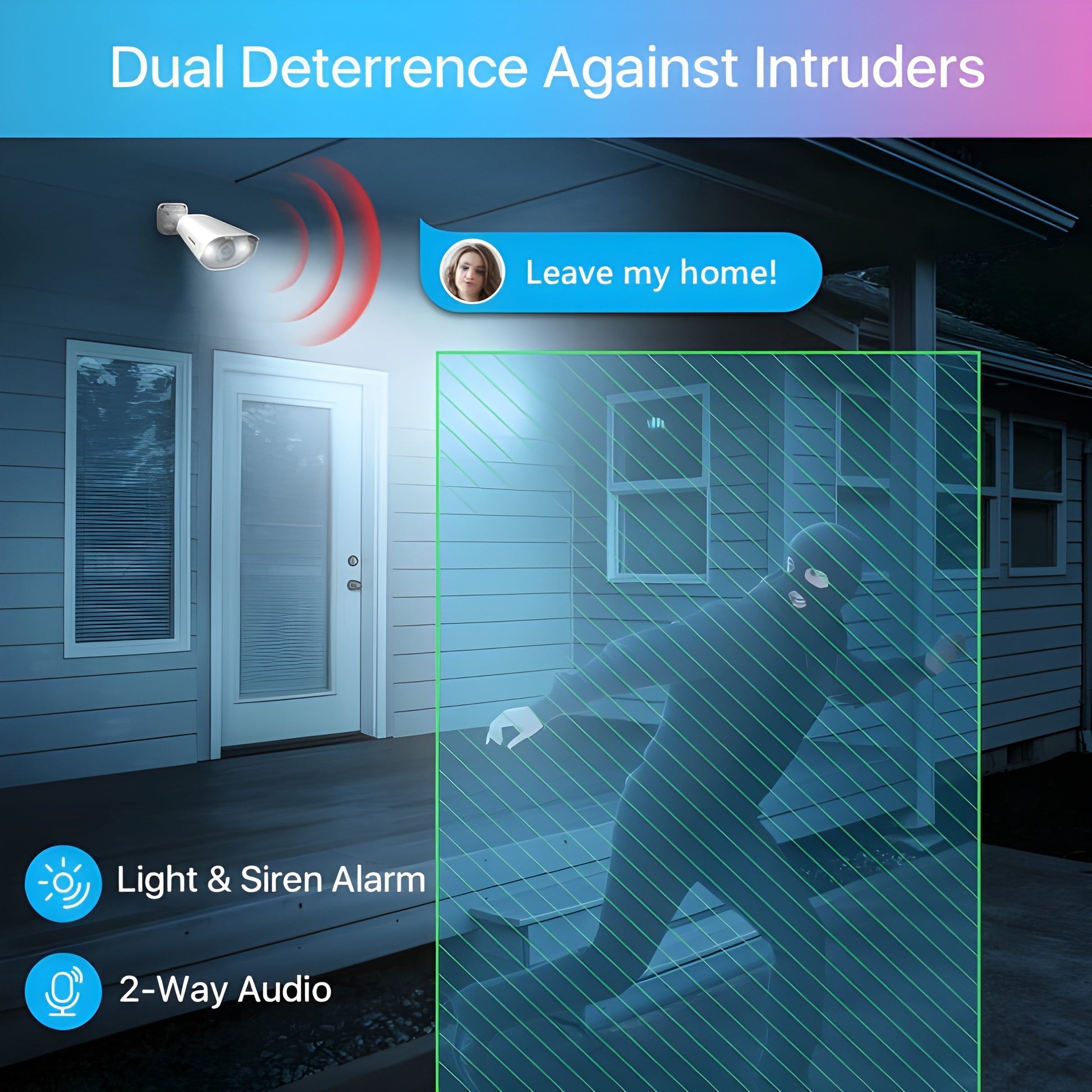 Powered by smart AI detection technology, this camera identify person and vehicles from other objects. Receive notifications whenever there is suspicious activity by a person or a vehicle lingering around your home or shop. No Subscription fee needed!