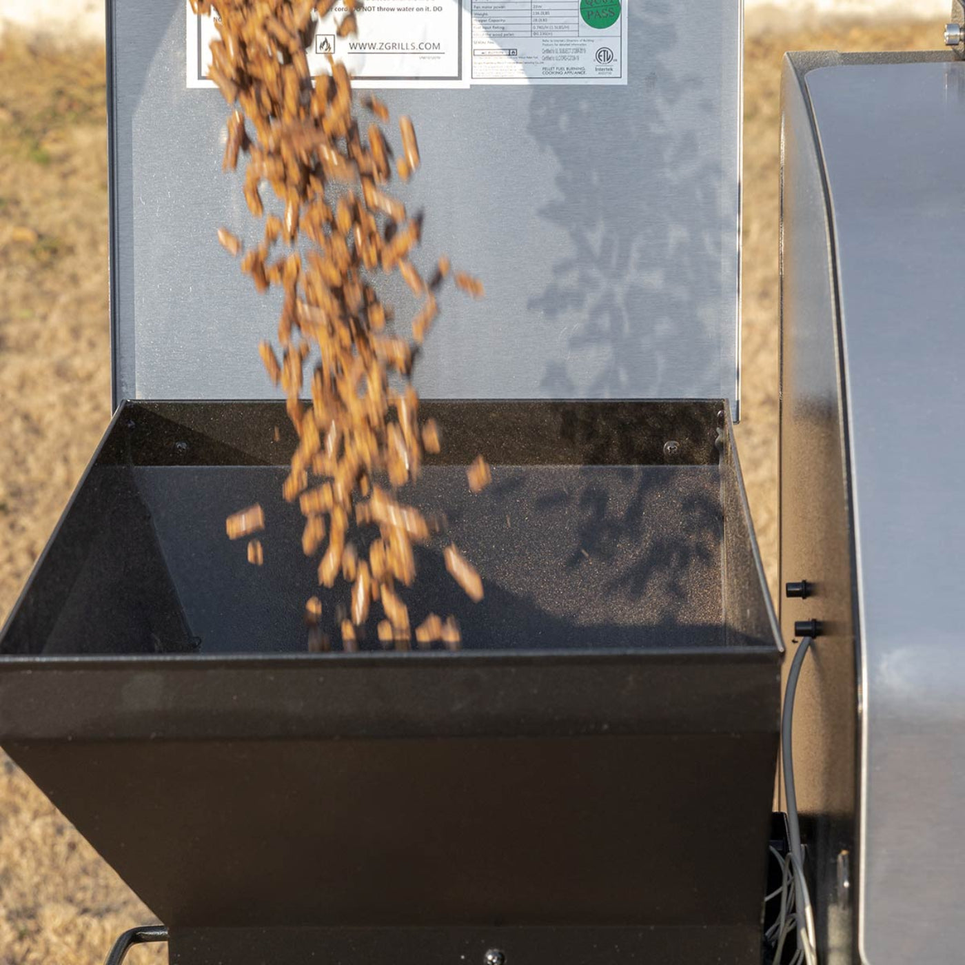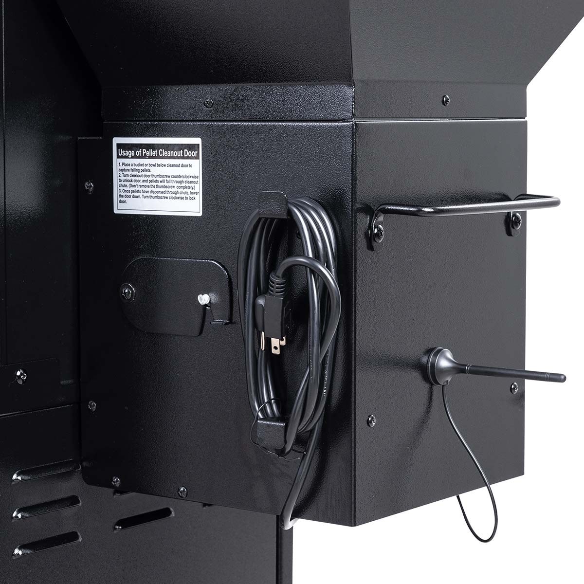NEW! Wireless Enabled version comes with Bluetooth and WiFi connectivity which enables easy monitoring and control via the Z Grills App. NEW! Hopper cleanout, view window, ash cleanout, 2 meat probes, and a side shelf. Conveniently prep food and store tools with the integrated shelf, hooks, and bottle opener. Elevate your grilling experience with enhanced features!